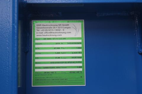 Typ SR 1000 Motorleistung: 37 kW Gehäusestellung: LG270 Baujahr: 2019 Ausführung: - IE2 Motor verbaut! - Einseitig saugender Hochleistungsradialventilator, - 4-poliger Motor direkt geflanscht, - E-Motor ausgestattet mit Markenkugellagern - wartungsfrei, verzinktes Gehäuse, - pulverbeschichtetes Gehäuse RAL 5010 - Ventilatoren-Laufräder lackiert (weniger Reibungsverluste durch glatte Oberfläche) Farbe RAL 5012 - Funkenschutz - F/B Auslegung des E-Motors für einen stabilen Einsatz im Grenzbereich - Frequenzumrichter-Betrieb möglich Ideal zum Belüften von 32 Rundballen. *Preis ohne Frequenzumrichter Preis* ab Werk! Bei Selbstabholung! * Gültig nur in ÖSTERREICH und DEUTSCHLAND! Transport/Versand kann gegen Aufpreis organisiert werden! Änderungen und Tippfehler vorbehalten! Weitere Infos über diese oder andere Heubelüftungsartikel auf Anfrage!Kontaktdaten:
