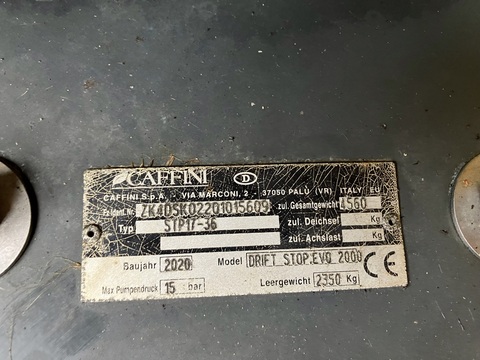 Klassifizierung: Gebrauchtmaschine; Seriennummer/Fahrgestellnummer: ZK4DSK02201015609; Arbeitsbreite: 5; Bearbeitete Fläche in ha: 500; Behältervolumen: 2000; luftunterstützte Ausbringung: Ja; Füllstandsanzeige Art: Analog; Pumpenleistung (Liter/Minute): 150; Außenbedieneinheit: Ja; Bordcomputer Modell: Müller Computer; Bauart: Gezogen; Anhängeart: Anhängevorrichtung; Bremsanlage: Keine Bremse; Reifengröße: 5.50 -16; Lenkungsart: Deichsellenkung; Beleuchtung: Ja; Einzeldüsenabschaltung: Ja; Düsen je Düsenkörper: 1; Düsenabstand (cm): 15; Gestängeführung: Manuell; Düsenart: Antidrift Düse; Randdüse: Manuell; Weitere Maschinenmerkmale: Rückgewinnungsspritze, Automatische Deichsellekung mit Doppellenkungssystem 4 Turbine mit hydraulischen Motoren Vollautomatische Computer CB9 Privatverkauf: 0664/8159574Kontaktdaten: