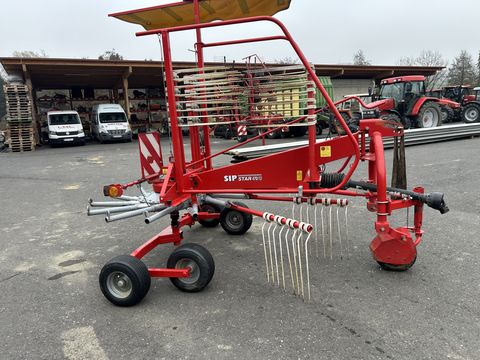 SIP STAR 470/13 Kreiselschwader 13 Zinkenarmen, jeweils vier Doppelzinken pro Zinkenarm, Arbeitsbreite gesamt ca. 4,7m, Zinken einzeln abnehmbar Höhenverstellung via Kurbelsystem, -Tandemfahrwerk -Tastrad -Gelenkwelle -Schwenkbock mit DämpfungsstrebenHektar (ha): 1