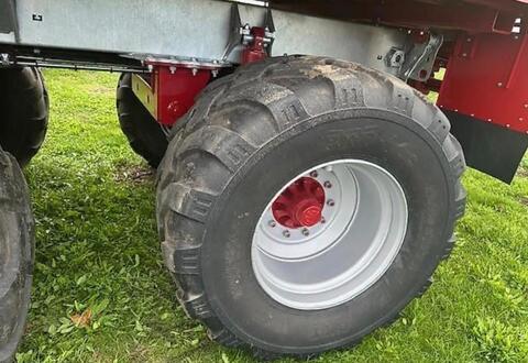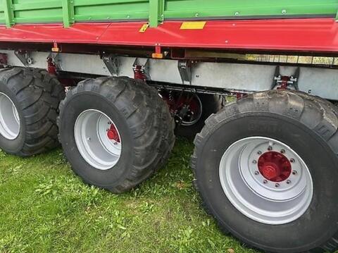 Bereifung (h): 750/45 R26,5, Druckluftbremse, Weitwinkel-Gelenkwelle, Deichselfederung ________ Demomaschine mit Einzel-Betriebserlaubnis 40 km/h Abdecksystem Bedienung über Schlepper-Direktanschluss (Laderaum im Schwenkbereich der Heckklappe nicht abgedeckt) (nicht bei Bereifung 30,5") Hydr. Tridem-Fahrwerk (BPW) mit Liftachse und mechanischer Zwangslenkung, Spur 2100 mm, Bremse 410 x 180 6 x Rad kpl. 750/45 R 26,5 170D 10-Loch, ET-50 BKT FL 630 Super 2-Leitungs-Druckluftbremse mit ALB Deichsel Untenanhängung mit Zugkugelkupplung, 4 t Stützlast Stützfuß bei hydr. Deichselfederung Hydropneumatische Deichselfederung Bedienung Ober Schlepper-Direktanschluss bei mechanischem Transportbodenantrieb Gelenkwelle einseitig Weitwinkel Z=6 Walterscheid Seitenmarkierungsleuchten Umrissbeleuchtung Laderaumbeleuchtung LED und Arbeitsscheinwerfer LED auf Kotflügel Zul. Gesamtgewicht 34000kgKontaktdaten: