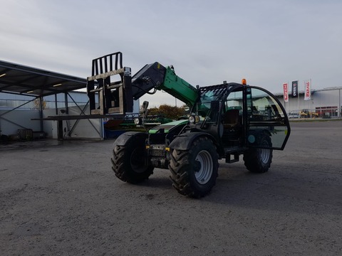 1 Gebrauchter Teleskoplader Hersteller: JLG Manufacturing Europe BVBA (Belgien) Modell: Deutz-Fahr Agrovector 35.7 Seriennummer: YC500001160005686 Erfassungsnummer: 174684 Erstzulassung: 03.08.2015 Betriebsstunden: 11.320 h Motor: Deutz-Dieselmotor Leistung: 74 kW / ca. 100 PS Hubkraft: 3.500 kg Stapelhöhe / Hubhöhe: 7,0 m Eigengewicht: ca. 7.000 kg Antrieb: Allrad Allradlenkung (4-Rad) Euroaufnahme (EURO-Schnellwechselrahmen) Hydraulische Geräteverriegelung Joysticksteuerung mit Multifunktionsgriff Arbeitsscheinwerfer vorne und hinten Rundumleuchte Kabinenheizung + Lüftungssystem Load Moment Indicator (Lastmomentanzeige/LMI) Ackerschiene mit Zugmaul Hydraulikanschlüsse am Auslegerkopf Fahrersitz (Bezug beschädigt) Bereifung: 460/70 R24 – Alliance Die Maschine läuft und ist funktionsbereit, weist jedoch dem Alter entsprechend Gebrauchsspuren auf. Verkauf ausschließlich im Ist-Zustand, wie besichtigt, ohne jegliche Gewährleistung. Maschinenstandort: Robert-Bosch-Straße 13, DE-74585 Rot am See _______________________________________Antrieb = hydrostatisch autom. Anhängevorrichtung = Ja Bereifung = 460/70R24 Geschwindigkeit = 35 Hubhöhe = 7 Hubkraft = 3,5 Hydraulikleitung = Ja Lenkung = 4 Rad Steuergerät dw = Ja Straßenzulassung = Ja Werkzeugverriegelung hydr. = JaKontaktdaten: