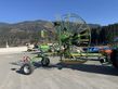 Vorführmaschine in Vollausstattung! Krone Swadro TC 760 Plus in folgender Ausführung: * Arbeitsbreite 680-760cm hydraulisch verstellbar (1xDW erforderlich) * Schwadbreite ca.100-180cm * Transporthöhe 357cm (Zinkenarme eingeklappt) * Kreiseldurchmesser 330cm * 2x13 Zinkenarme (6 Stück klappbar) * Leistungsbedarf ca. 50PS * Erforderliche Hydraulikanschlüsse: 1xEW, 1xDW * Zweipunkt-Anbaubock (Kat I/II) inkl. pendelnder Aufhängung mittels Kugelauge und Laufrolle * Zweifuß-Abstellstütze * Kreiselgetriebe mit wartungsfreier Fließfettfüllung, komplett durchgehärtete KRONE Dura-Max Kurvenbahn * Kreisel einzeln durch Überlastkupplung abgesichert * Weitwinkelgelenkwelle * starker Antriebsstrang mit Freilauf * Kardanische Kreiselaufhängung inkl. KRONE Jet-Effekt * Lagerung der Zinkenarme mittels wartungsfreier Rillenkugellager * 4 Nachlauf-Doppelzinken 10,5mm pro Arm mit großem Windungsdurchmesser und "Lift-Effekt" * Zinken gegen Verlust um den Zinkenarm montiert * elektrisch-hydraulische Einkreiselaushebung am Vorgewende * elektrische Kreiselhöhenverstellung * Federentlastung der Kreisel * Achsschemel-Zwangslenkung- direkte Ansteuerung über den Anbaubock * 6-Rad-Kreiselfahrwerk (derzeit noch nicht montiert) * mittleres Schwadtuch * usw...... * Vorführmaschine sofort verfügbar Besichtigung jederzeit nach Vereinbarung möglich! Wir freuen uns auf Ihre Anfrage!Hektar (ha): 10