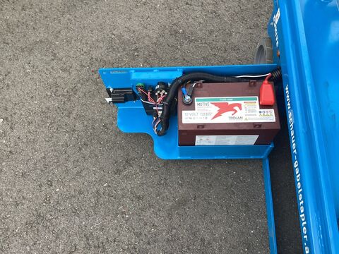 Bauart: Arbeitsbühnen / Scherenarbeitsbühne, Tragkraft: 227kg, Hubhöhe: 4300mm, Bauhöhe: 1880mm, Batterie: Trojan T1275-AGM Bj. 2025 24V 115Ah Zustand: Neu, Bereifung vorne: Vollgummi Einfach 80 - 100% , Bereifung hinten: Vollgummi Einfach 80 - 100% , Sonderausstattung: CE Zertifikat, Safety Light,