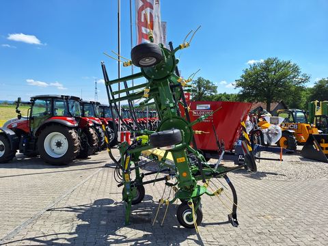 Nr. 70598 Kreiselheuer - mit 8,134m Arbeitsbreite - mit ca. 2,75m Transportbreite - mit 8 Kreisel mit je 5 Zinkenarme - mit Krone OptiTurn Zinken mit dreidimensionaler Form und ungleichlangen Zinkenschenkeln - mit werkzeugloser Streuwinkelverstellung 13-19°(Zinkennachlauf dreifach verstellbar) - mit Zinkenverlustsicherung - mit 1.376mm Kreiseldurchmesser - mit hydraulischer Hochstellung - mit Dreipunkt-Anbaubock (Kat II) inkl. pendelnder Aufhängung mittels Kugelauge und Laufrolle - mit Abstellkonzept mit zwei Abstellstützen (vorne & hinten) - mit Schwenkbock - mit einstellbaren Dämpferstreben mit innenliegenden Druckfedern - mit Gelenkwelle - mit OctoLink Fingerkupplung zwischen den Kreiselelementen - mit Kreiselgetriebe in Fließfett laufend - mit hydraulisch zentral verstellbarer Grenzstreueinrichtung - mit 16x6.50-8 Ballonbereifung - mit ca. 1.240kg Gewicht Zusatzausrüstung: - B017 mit Tastrad - B014 mit LED Belleuchtung - B450 mit hydraulischer Vorgewendesteuerung Das Verkaufsteam der Fa. Schwarzmayr zeigt Ihnen das Gerät/Maschine gerne und bittet um Terminabsprache zwecks Besichtigung bei uns am Betrieb. Wir sind auch samstags bis 12:00Uhr für euch da! Gerne unterbreiten wir Ihnen auch ein Angebot per Mail. Freuen uns auf einen Besuch oder auf eine Anfrage.Kontaktdaten: