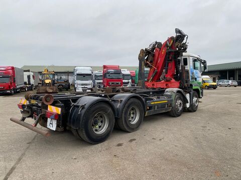 == Dodatočné informácie (SK) == MAN TGS 35.400 hákový naťahovač kontajnerov + HR Palfinger E165Z + drapák na železný šrot, 8x4 r.v. 09/2009, 307078 km, EURO 4, 10518 cm3, 294 kW, manuálna prevodovka, motorová brzda, klimatizácia, 2 miesta na sedenie, váha- 16.250 kg, celková hmotnosť- 35.000 kg, na perách, ťažné 50, stav pneumatík 4x 50% 4x 20%, vozidlo má zahraničný TP CENA: 34.900,- EUR + DPH Ponúknite Vaše vozidlo na protihodnotu, rozdiel môžete doplatiť aj formou splátok. Využite možnosť komisionálneho predaja. Poskytujeme výhodné financovanie prostredníctvom leasingu alebo úveru podľa požiadaviek klienta. Batérie môžu byť opotrebované, v tom prípade je potrebné si priniesť vlastné alebo kúpiť nové. Batteries can be damaged, you have to bring your own or you can buy new ones at our stockKontaktdaten: