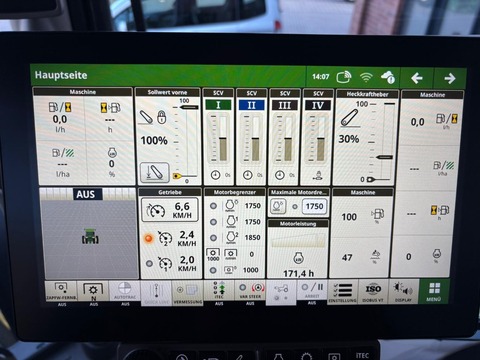 -AutoPowr IVT – 50 km/h (31 mph) -AutoTrac-Vorbereitung -JDLink-Modem -G5Plus CommandCenter -ComfortView-Kabine -Premiumsitz -Kabinenfederung -Elektrisch verstellbare Spiegel -Tür mit B-Säule links und Fenster -App-Radio -CommandPRO mit Smartphone-Halterung -Hydraulikpumpe – 155 l/min -Heckzapfwelle – 540E/1000/1000E -Automatische Stabilisatoren – Kategorie 2 bis 3 -Planeten-Hinterachse 92 mm (3,62 Zoll) -Stahlfelgen – 2-Position -Vorderachse mit Allradantrieb – TLS Plus mit Federung -Stahlfelgen 2 Positionen -Vordere Kotflügel für mechanischen Allrad -Einteilige Kotflügelverlängerungen -Allrad-Übersetzungsverhältnis 1,485 -Display-Montageschiene -Druckluftanschluss -Lederlenkrad -Kühlfach -Kotflügelbedienung für dedizierte Funktionen -Zusätzlicher Hydrauliköltank -Power-Beyond-Vorbereitung hinten -Hydraulisches IPM (Intelligent Power Management) -Elektrischer Joystick -Premium-Frontkraftheberpaket -Ultimate-Lichtpaket -Doppelte Rundumleuchten -Straßenbeleuchtung auf Gürtellinie – H4 (Landstraße) -Pneumatische Anhängerbremsanlage -Lenkung mit variablem Übersetzungsverhältnis -Dachluke PowerGard Protection Plus bis zum 21.07.2027 oder bis zum erreichen von 1.500 Betriebsstunden MAS286100 Preis gilt für vorhandenen Zustand. Angebot freibleibend. Irrtümer, Änderungen und Zwischenverkauf vorbehalten. Alle Angaben ohne Gewähr.AutoTrac Vorbereitung = JaBereifung vorne: 600/65 R28