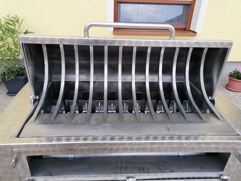Die Brüh - und Enthaarungsmaschine, Baujahr 2023, bietet innovative Lösungen für die effiziente Verarbeitung von Spanferkeln und Schweinen bis zu einem Gewicht von 80 kg. Im Mittelpunkt steht die Nirosta marmorierte Brüh- und Enthaarungsmaschine, die dank ihrer Mobilität besonders flexibel einsetzbar ist. Mit einer Innenlänge von 110 cm und einer Gesamtabmessung von L=160 x B=76 x H=126 cm ist die Maschine kompakt und dennoch leistungsstark. Ausgestattet mit einer Einwalzenmaschine und einem Halterechen, gewährleistet sie eine gründliche und schnelle Verarbeitung. Die integrierte Heizung mit einer Leistung von 10,1 kW bei 400V sorgt für die notwendige Betriebstemperatur. Ein großer Wasser- bzw. Borstenauslauf mit Schlauchanschluss ermöglicht eine einfache Reinigung und Entsorgung, wobei der Wasserverbrauch bei ca. 70 Litern liegt. Diese Maschine ist ab Lager prompt verfügbar, was eine schnelle Lieferung und Einsatzbereitschaft garantiert.Kontaktdaten: