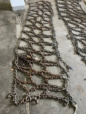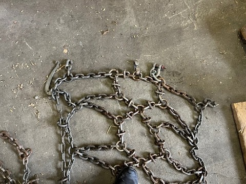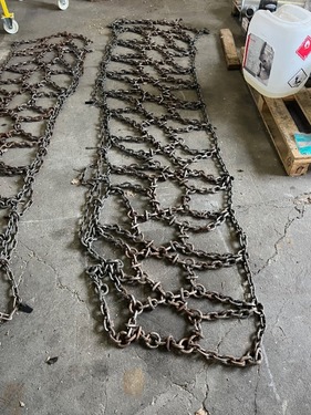 Schneeketten mit VerschleissgliederGrösse 14.9-24", passen vermutlich auf 380/85-24", 405/70-24", 440/65-24"waren montiert auf 14,9-24"Kontaktdaten: