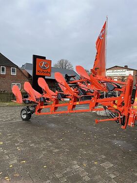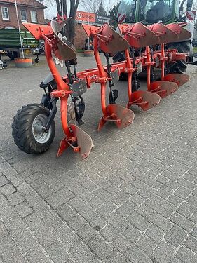 Kubota Pflug RM4005 V (baugleich mit Kverneland 2300 S) (Inklusive 2 Jahren Gewährleistung) Baujahr: 2023 Zustand: Demo-Gerät, ca. 35 ha gearbeitet 5 Schar Maiseinleger mit zentraler Einstellung Grindel mit Aero-Profil zur Vermeidung von Verstopfungen 100er Körperabstand 200er Drehwerk Rahmenhöhe: 80 cm Arbeitsbreite: 175 cm bis 275 cm Variomat: stufenlose Einstellung der Arbeitsbreite Körper Nr. 28 QuickFit Schnellwechselspitze HD-Federpaket Scheibensech 550 mm gezackt Stütz- und Transportrad 280/60-15,4 Gefederter Packerarm Schwenkbares Drehwerk, Transport Tragachse Trailer-Transport-System: Pflug läuft auf der Straße wie ein Anhänger hinterher ohne weites Ausscheren beim Abbiegevorgang. Alfred Scheidel Landmaschinen GmbH & Co.KG