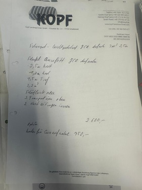 Schwergut - Leichtgutschaufel JCB-Aufnahme 3m³ 2,5 m (Int-Nr.: 15107) 2,5 m breit 1,2 m hoch 1,5 m tief 3,2 m³ Schürfleiste NEU, zwei Transportösen oben, zwei Versteifungen innen Option: Hacken für EURO-Aufnahme 750,00 EUR zzgl. MwSt. Es handelt sich hierbei lediglich um eine Anzeige, die zuInformationszwecken dient. Der Kaufvertrag kann nach unseren AGBs mit unsabgeschlossen werden. Gerne kümmern wir uns um Finanzierungsmöglichkeiten im In-und Ausland. Es besteht die Möglichkeit der Inzahlungnahme anderer Maschinen.Kontaktdaten: