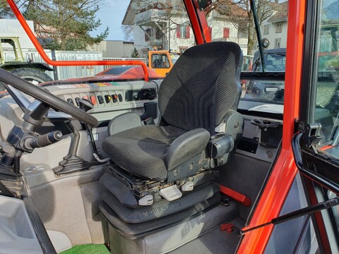 Top Zustandab Service und MFK Nov 2025Technische Hauptdaten- Motor: VM 4-Zylinder Turbo-Diesel, 51.5 kW / 70 PS, 2970 cm³, 250 Nm- Getriebe: Hydrostatischer Fahrantrieb mit 2-stufiger Umschaltung + mechanischem 2-Stufen-Getriebe- Allradantrieb, elektrohydraulisch zuschaltbar- Lenkung: Allrad-, Front-, Heck- und Hundeganglenkung, während der Fahrt umschaltbar- Differenzialsperren: vorne & hinten elektrohydraulisch- Zapfwellen: Front & Heck, 540 U/min (lastschaltbar)- Fronthubwerk: Kat. 1, Hubkraft 1500 kg, Seitenverschub ±200 mm- grosse Bereifung: 425/55-17 AS inkl. Doppelräder hinten und vorneAusstattung:- Luftfeder-Komfortsitz, verstellbare Lenksäule- Komfortkabine mit Klimaanlage, Gewicht:3050, Seriennummer:VAR226032AAC60044