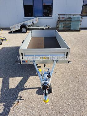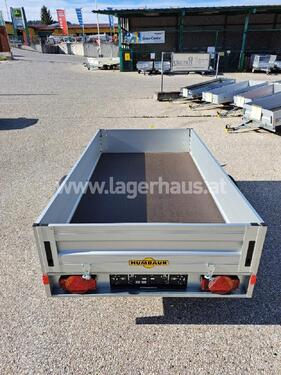 Humbaur PKW Anhänger HA 132513 KV Gesamtmaße: 3794 x 1806 x 901 mm Innenmaße: 2510 x 1310 x 350 mm Ladehöhe: 530 mm Höchstzulässiges Gesamtgewicht: 1300 kg Nutzlast: 1050 kg Eigengewicht: 250 kg Einachs gebremst Mit Klappe vorne V-Zugdeichsel Bordwände aus eloxiertem, doppelwandigen Aluminiumprofil Klappen mit versenkten Verschlüssen Eckrungen mit Einsteckmöglichkeit Bodenplatte 15 mm stark 6 Zurrbügel in den Seitenbordwänden integriert Zugkraft pro Zurrbügel: 400 kg 13 poliger Lichtstecker Multifunktionsbeleuchtung 14 Zoll Bereifung Stützrad montiert ; Artnr.:04871, Standort der Maschine: RLH ZwettlZul. Gesamtgewicht (kg): 1300