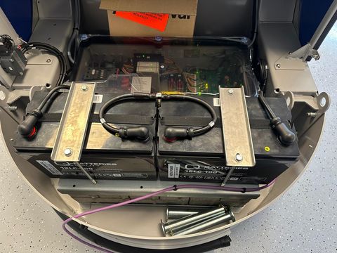 Technische Details: + 2 Stück 12 Volt Batterien, 110 Ah +Der OptiDuo wechselt selbsttätig die Spur +Maximale Fahrgeschwindigkeit 12 m/Minute bzw. 8,5 m / Minute +Mindestbreite Futtertisch: 3,3 m +Maschinenabmessung: L*B*H: 1,65*1,2*1 m +Arbeitsbreite: 1,05 m • Gewicht: 560 kgKontaktdaten: