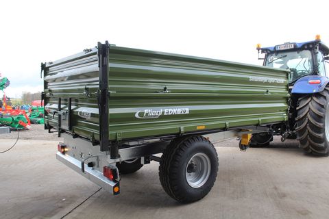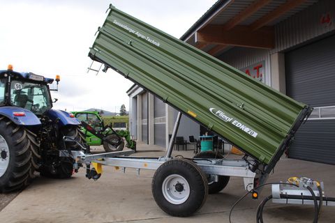 Fliegl Einachs-Dreiseitenkipper EDK 70 Fox - 1-Achs Fahrgestell - zul. Gesamtgewicht 7.000kg (6.000kg Achslast zzgl 1.000kg Stützlast) - Anhhängehöhe ca. 850mm - Brücke 4000x2220mm - Eckrungen steckbar - Gummidichtung in Spezialprofil geführt - Brückenrahmen aus hochwertigen Hohlträgern - Grundbordwand 500mm - Zentralverriegelung rechts, links u. hinten - Getreideauslauf 400x230mm - Hohlträgerrahmen verzinkt - ungefedert - hydraulische Bremse ohne LAV - 25km/h Ausführung - 4-Stufen-Kippyzlinder 1500mm Hub, Endabschalter - AbsperrhahnKontaktdaten: