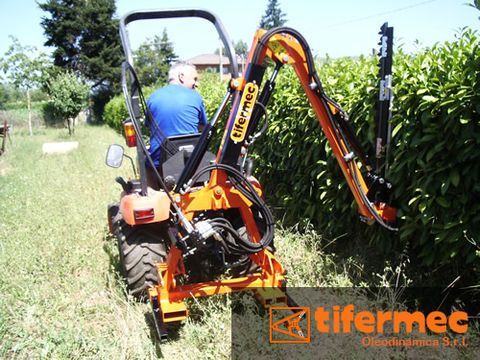 TIFERMEC Heckenschneider mit Joystick Bedienung Typ: TS 370/160 3700 mm Reichweite 5360 mm Arbeitshöhe 1600 mm Schnittbreite 180° hydr. Kopfwinkelverstellung 30 mm max. Aststärke Bowdenzug-Bedienung Heckanbau / Frontanbau (Dreipunktanbau KAT I+II) Inklusive: Eigenhydraulik für TIFERMEC Serie TS Mindestgewicht Traktor: 900 kg Hydraulischer Heckenschneider für den Heck- und Frontanbau Auslegearm mit leistungsstarker und zuverlässiger Heckenschere für einen professionellen Heckenschnitt bis max. 30 mm Materialstärke leichtzügige Bauweise für Klein- und Kompakttraktoren verschleißfeste, gebuchste Drehgelenke (abschmierbar) hochwertige Produktqualität durch Verwendung von europäischen Markenkomponenten mechanische Anfahrsicherung über Federzug an Unterlenkeraufnahme Anbau an Heck- oder Fronthydraulik des Schleppers (KAT I/II) möglich POWER Messerantrieb 200 bis 400 Schnitte pro Minute präzise Ansteuerung über WALVOIL-Ventilblock mit Regelventil ANTI-BLOCKIER-System (automatische Blockagesicherung) Doppel-Stoßdämpfer schützt vor Überlastung des Schneidkopfes verhindert Materialverstopfung durch zu dicke Äste, Fremdkörper etc. Schere bleibt bei dickeren Ästen nicht stehen, sondern schneidet wenn erforderlich mehrfach nach (Schneidvorgang wird wiederholt) PRO CUT-Messerklingen feine Verzahnung für einen glatten und sauberen Schnitt lange Standzeiten durch gehärtetes und verzinktes Material einfacher und schneller Wechsel der Messerklingen Austausch über zwei speziell geformte Zahnschrauben 180° Kopfwinkelverstellung Neigung der Heckenschere kann um 180° hydraulisch verstellt werden flexible Einsatzmöglichkeiten und optimale Positionierung des Gerätes Eigenhydraulik für TIFERMEC Serie TS hydraulische Eigenversorgung über CASAPPA-Pumpe, Aufsteckpumpe für die Traktor-Zapfwelle großer Öltank mit Hochdruck-Hydraulikfilter geringe Ölerwärmung sauber und zuverlässig auch bei extremer Beanspruchung Weitere Serienausstattung Anbau nah am Trägerfahrzeug ermöglicht sichere Gewichtsverteilung Transportstoßdämpfer Informieren Sie sich über unsere Aktionspreise. Bis zu 7 Jahre Zahlungsziel! Für Fragen jeglicher Art, stehen wir Ihnen gerne zur Verfügung.Kontaktdaten: