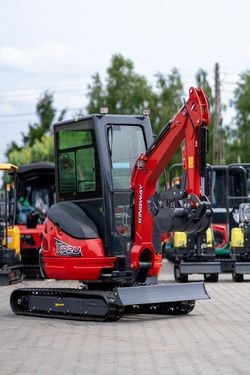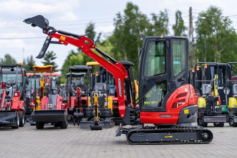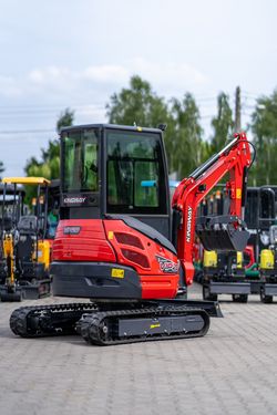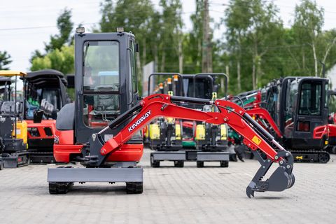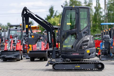 Dieses Inserat dient ausschließlich zu Informationszwecken und stellt kein Angebot im rechtlichen Sinne dar. KINGWAY VIP20 – kompakte Kraft, professionelle Möglichkeiten Benötigen Sie einen zuverlässigen Minibagger für Bau-, Erd- oder Installationsarbeiten? Setzen Sie auf den KINGWAY VIP20 – eine leistungsstarke und wendige Maschine, die für den intensiven Einsatz unter allen Bedingungen konzipiert wurde. Dank eines fortschrittlichen Hydrauliksystems und einer robusten Konstruktion bietet der VIP20 hohe Effizienz bei gleichzeitig niedrigen Betriebskosten. Mit einer großen Arbeitsreichweite von bis zu 3700 mm, einer Grabtiefe von 2400 mm und einem kleinen Heckschwenkradius von nur 660 mm eignet sich der Minibagger ideal für Arbeiten auf engstem Raum. Für den Bedienkomfort sorgen eine geschlossene Kabine und eine ergonomische Steuerung. Das mechanische Kettenspannsystem gewährleistet Langlebigkeit und einfache Wartung. TECHNISCHE PARAMETERS: Modell: VIP 20 Betriebsgewicht: 1820 kg Schaufelvolumen: 0,08 m³ Fahrgeschwindigkeit (hoch/niedrig): 0–1,8 km/h Max. Grabhöhe: 3600 mm Max. Ausschütthöhe: 1900 mm Max. Grabtiefe: 2400 mm Max. Grabreichweite: 3700 mm Minimaler Wendekreis: 1860 mm Minimaler Heckschwenkradius: 660 mm Max. Hubhöhe der Planierschildes: 365 mm Max. Absenktiefe des Planierschildes: 220 mm Radstand: 1460 mm Kettenspannsystem: Mechanisch ABMESSUNGEN: Gesamtlänge: 3450 mm Gesamtbreite: 1400 mm Gesamthöhe: 2250 mm Planierschild (Breite × Höhe): 1300 × 220 mm Gummiketten (Breite × Teilung × Glieder): 230 × 72 × 54 MOTOR: Motorhersteller: Laidong Motormodell: KM385B Kühlung: Wasserkühlung Kraftstoffart: Diesel Maximale Leistung: 29 kW Hydraulikdruck: 16,3 MPa TANKVOLUMEN: Kraftstofftank: 16,6 L Hydrauliköltank: 22 L PREIS: 14.000€ netto 16.600€ bruttoKontaktdaten: