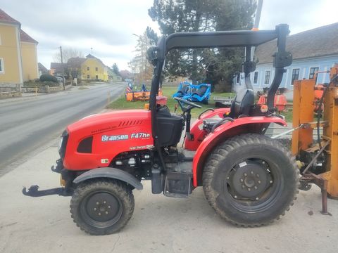 Branson F47hn, nur 450 Betriebsstunden, Zuidberg FHY + FZW, Einhebel-Steuergerät mit 2 DW Zwischenachs Stg., 1 DW Heck Stg., Scharmüller Anhänge höhenverstellbar, 3-Stufen Hydro, Allrad, Kommunalreifen, Kotflügel vorneBereifung vorne: 200/70-16