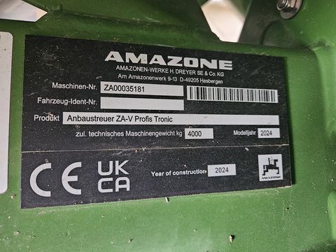 Profis Wiegesystem, Streuwerk ZA - V Tronic, Gelenkwelle, Behälter 2700 Liter, Schmutzfänger, Abdeckrollplane, Streuscheibensatz V-Set 2 Grenzstreusystem Limiter V+, rechts, Roll und Abstellvorrichtung schwenkbar, Neigungssensor, Leermeldesensor,Kontaktdaten: