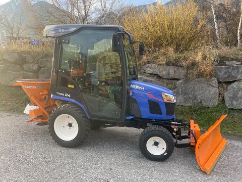 Kleintraktor Kommunaltraktor für Winterdienst ISEKI TXGS 24 - mit Rauch Streuer - mit ISEKI Schneeschild RSM130 Traktor ISEKI TXGS24 AHL: - 3-Zylinder - 23 OS - Stage V - Hydrostat-Getriebe, 2-stufig - 2 Fahrpedale - Sicherheitskabine / Komfortkabine, ganzjahrestauglich, breiter und komfortabler Einstieg, größtmögliche Kopffreiheit bei niedriger Bauhöhe - aufstellbare Heck- und Frontscheibe - Bereifung 255/50-10 & 240/R16 - Heckzapfwelle mit 540 U/min - Rundumkennleuchte LED - Trittstufe für Kabine - Heckscheibenheizung Winterpaket - Frontkraftheber mit 2 Hydr.Anschlüssen vorne - Unterbodenschutz ab Werk Schleudersteuer Rauch SA121R: - Anbau über Heckdreipunkt Kat.1 - mech. Verstellung des Dosierschiebers und der Streubreite - Fassungsvolumen: 120 Liter - Arbeitsbreite: 0,8m - 5,0m - Eigengewicht: 55kg - Maximale Nutzlast: 180kg - Antriebsdrehzahl: 540U/min - Anschlußprofil: 1 3/8" - Rührwerk für Sand und Salz - PVC Abdeckplane Schneeschild RSM130: - inkl. Vulkolanleiste - Überlastsicherung durch Umklappfunktion des Scharblattes - höhenverstellbare Schleifkufen - seitlich hydraulisch schwenkbar - inkl. auswechselbarer Stahlverschleißschiene, - Anbau über Kuppeldreieck Kat.0, benötigt min. 2 Hydraulikkupplungen D(doppeltwirkend) vorn - Arbeitsbreite: 1.150mm-1.300mm - Scharhöhe: 544mmReifenprofiltiefe vorne (%): 100