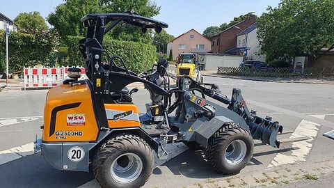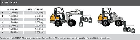 Radlader 0,4 m³ - Giant G2500 Xtra HD 2470 Bj.2023, gepflegte Gebrauchtmaschine erst 100 Betriebsstunden Eigengewicht 2,4 to - Kipplast 1,8to* - Durchfahrthöhe 2m mit abgeklappten Dach - Kubota Motor - Produziert in den Niederlanden 0,4m³ Schaufel - Palettengabel, Rohrbruchsicherungen Extras - 31x15.50-15 X-TRAC - 1. Zusatzkreis (DW) mechanisch bedient durch Hebel hinter Joystick - 2. Zusatzkreis (DW) elektro-hydraulisch auf Joystick nach vorne - Dauerschaltung für zusätzliche Funktion, zweiseitig (nur für mech. Bedienung) - Modularer Zylinderaufbau (MZA) - C) Rohrbruchsicherungsventile auf Hub und Kippzylinder + Schwimmstellung - ROPS / FOPS klappbares Sicherheitsverdeck deluxe - Luftgefederter, verstellbarer Komfortsitz - StVZO Paket bis 20 km/h (nur für D, A, CH) DATENBESTÄTIGUNG - Straßenverkehrsbeleuchtung (Halogen) - Verschiedene Werkzeugaufnahmen EURO - Heckgewichtsplatte 125 kg unter der Maschine - Dokumentenbox Kaufpreis auf Anfrage. Finanzierung und Lieferung Deutschlandweit möglich! Besichtigung Mo-Fr. 8 - 16 Uhr nach Absprache Telefon 0231/9369666 Bitte haben Sie Verständnis, dass wir aufgrund erhöhter Nachfrage nicht jede Nachricht sofort schriftlich beantworten können. Auch haben unsere Erfahrungen gezeigt, dass die meisten Fragen schnell und unkompliziert in eine kurzen Telefonat geklärt werden können. Also zögern Sie nicht bei ernsthaftem Interesse uns anzurufen, wir freuen uns auf Ihren Anruf. Technische Daten:; Betriebsgewicht: 2.400 kg (gemessen in Standardausführung und Erdbauschaufel); Hubkraft: 2.200 kg; Hubhöhe: 2.498 mm (gemessen im Drehpunkt, Maschine gerade, in Serienbereifung); Länge ohne Schaufel: 3.316 mm; Breite: 1.100 mm (gemessen mit Serienbereifung); Durchfahrtshöhe: 2.322 mm (gemessen mit Serienbereifung, Standard; Fahrerschutzdach); Motor Kubota D1505 (4 Zylinder) Stage V 26 PS / 19 kW; Hydrostatischer Allradantrieb - 8 Tonnen Planetenachsen mit 18.000 N Zugkraft; Differentialgetriebe mit Sperrwirkung in beiden Achsen; Fahrhydraulik: 65 l/min (360 bar); Arbeitshydraulik: 40 l/min (210 bar); Hydraulikkreislauf (doppeltwirkend) mechanisch bedient; Schwimmstellung für Hubzylinder; ROPS / FOPS Fahrerschutzdach inkl. Sicherheitstüren links und rechts; Hydraulische Betriebsbremse; Mechanisch gefederter, verstellbarer Komfortsitz mit Sicherheitsgurt und Armlehne; Batteriehauptschalter; 1 Heckgewichtsplatte integriert im Chassis; Arbeitsscheinwerfer (Halogen) vorne, am Hubarm; Zyklonvorfilter; Ölkühler; Handbremse: Trommelbremse; Ohne Anbauwerkzeug; *Herstellerangaben