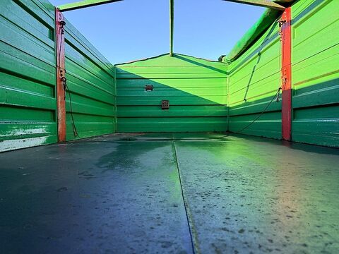 Gebr. PRONAR Tandemdreiseitenkipper T 683 Baujahr 2011 Seriennummer SZB6830XXB1X00147 Technische Daten: Zul. Gesamtgewicht 20000 kg Eigengewicht 4700 kg Nutzlast 15300 kg Ladevolumen 17,3 m³ Ladefläche 12,3 m² Pritsche innen LxB 5100 mm x 2420 mm Gesamtmaße LxBxH 6800/2550/2790 mm Bordwand 800 + 600 mm Plattformhöhe 1350 mm Blechdicke (Boden/Bordwand) 5/2,5 mm Spurweite 1960 mm Parabelfederung Zylinderlänge 1980 mm / 18 Liter / 200 bar Kippsystem dreiseitig Deichselstützlast 2000 kg Kippwinkel hinten/Seite 50°/46° Maximale Geschwindigkeit 40 km/h Bereifung 560/60R22,5 Serienmäßige Ausstattung: Stahlprofilbordwände zentrale Bordwandverriegelung Aufstiegsleiter und Bordstufen geteilte Bordwände 800 mm + 600 mm 2-Kreis-Druckluftbremse Deichsel mit Gummifederung Achsabstand 1360 mm Trommelbremse 406 x 120 mm Kurbelbremse Kippeinrichtung mit Abschaltvorrichtung Teleskopzylinder Beleuchtungsanlage elektrischer Anschluß + Öl und Luft hinten Keile mit Halter Kornschieber in der Rückwand Kotflügel für Hinterachse hydr. Schrägstützfuß Rahmen rot RAL3000, Aufbau grün RAL6010 Abdeckplane mit Podest Autom. Anhängekupplung (Rockinger) Anlieferung und Finanzierung gegen Mehrpreis möglich. Alle technischen Daten und Ausstattungen sind annähernd und unverbindlich. Es gelten ausschließlich unsere Allgemeinen Geschäftsbedingungen, einsehbar unter www . euro-jabelmann . de. Alle Preise gelten netto ab Werk in D-49847 Itterbeck zzgl. der gesetzlichen MwSt. Die Frachtkosten und weitere Informationen erfragen Sie bitte bei uns. Die Angebote sind gültig solange der Vorrat reicht. Alle Angaben ohne Gewähr.Kontaktdaten: