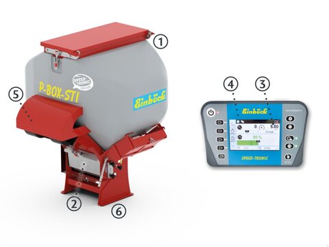 Die Einböck P-BOX-STI ist ein pneumatisches Sägerät mit elektrischer Mengendosierung. Die bedienerfreundliche, elektrische SPEED-TRONIC Steuerung regelt die Aussaatmenge in Abhängigkeit zur tatsächlichen Fahrgeschwindigkeit. Die dazu notwendigen Geschwindigkeitsimpulse können maschinenseitig über verschiedene Sensoren oder über die 7-polige Signalsteckdose des Traktors erfasst werden. Mit der P-BOX-STI können alle üblichen Sämereien und deren Gemenge ab ca. 1 kg Saatgut pro ha ausgebracht werden. Das Saatgut wird pneumatisch über Schläuche zu den Verteilungsprallblechen befördert, bei welchen eine exakte Verteilung erfolgt. Die Saatmenge kann durch einfache Einstellung im SPEED-TRONIC Terminal stufenlos angepasst werden. Mit dem pneumatischen Sägerät P-BOX-STI können beispielsweise folgende Tätigkeiten erfolgen: Ausbringung von Untersaaten, Zwischenfrüchte, Winterbegrünung, Neuansaat, Düngung, usw. Volumen 265 Ltr. / 8 Auslässe / 2 Säwellen / Elektr. Gebläse / 24 m Saatgutschlauch / Abdrehblech und Abdrehwanne / Elektr. Bedienteil mit Mengenverstellmöglichkeit und Hektarzähler. Keine Sensoren im Grundpaket enthaltgen. Geschwindigkeitssensor / Oberlenkersensor oder Anschlußkabel für Signalsteckdose des Schleppers gegen Mehrpreis lieferbar. Abdrehtaster und Leermeldesensor ebenfalls erhältlich.Reihenanzahl: 8