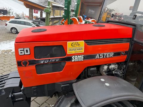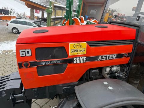schöner gebrauchter Same Aster 60DT mit Originalkabine und Heizung, Luftsitz, Kinderbeifahrersitz, Arbeitsscheinwerfer vorne und hinten, Frontgewicht, Unterlenker mit Fanghaken Kat2, 380/85-30, bzw. 250/85-24 Bereifung, Baujahr 1992, mit ca.2415 Betriebsstunden, 40km/h, sofort verfügbar! Wir sind gerne telefonisch für Sie erreichbar, oder besuchen Sie uns vor Ort.Bereifung vorne: 380/85-30