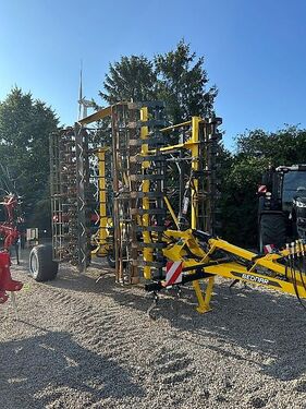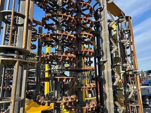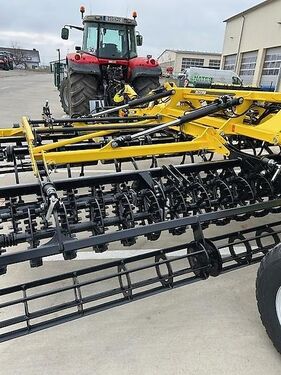 TECHNISCHE SPEZIFIKATIONEN Arbeitsbreite (m): 6 Transportbreite (m): 2,9 Transportlänge (m): 7,3 Transporthöhe (m): 3,8 Arbeitstiefe (cm): 2-12 Anzahl der Schärchen (St.): 24 Empfohlene Zugleistung des Schleppers (PS): 150-220 Max. Belastung pro Achse (kg): 3900 Max. Belastung der Aufhängung (kg): 2130 Typ der Aufhängung: Unterlenkeraufhängung Kat. 3 Maße der Transportreifen: 500/50-17 Gesamtgewicht: 6030 Ausstattung: hydraulische Klappung von Transport- in Arbeitsstellung zwei seperate Arbeitssektionen - Möglichkeit die Arbeitssektionen zu tauschen "Swifter Konzept" mechanische Tiefeinstellung vordere Flachstabwalzen Sektionenschutz Ersatzteil Katalog CoC Document Deichsel Unterlenkeranhängung Kat. 3 Diebstahlsicherung-Unterlenkeradapter Spurlockerer CRUSHBAR-hydraulische Planierleiste vordere Flachstabwalzen (370 mm) ohne Krümelleiste Sektionen/Gänsefußschare/Planierscheibe doppelte Crosskillwalzen-steinige Böden Version (440 mm) hydraulische Tiefstellung Achse mit Druckluftbremse Räder 500/50-17 Finish-Walzen (270 mm) Bedienungsanleitung Die Preisangabe ist netto, zzgl. der gesetzlichen Mehrwertsteuer. Keine Haftung für Druckfehler oder Irrtümer. Die Abbildungen können in Form und Farbe vom Original abweichen. Zwischenverkauf vorbehalten. Besichtigungen möglich – unsere aktuellen Öffnungszeiten finden Sie auf unserer Homepage. NATES GmbH