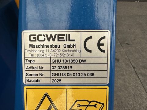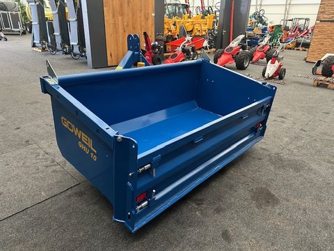 Göweil Hochkippschaufel/Kippmulde GHU 10/1850 DW - Nutzlast bis zu 3.500kg - doppelwirkender 2-stufiger Teleskopzylinder - Dreipunktanbau Kat. I + II - Torsionsfedern für schnelles Absenken in Endlage - flacher Schaufelboden mit aufgeschweißter Schürfleiste aus Hardox - abnehmbare Pendelbordwand - Schaufeltiefe 1.000mm - Schaufelbreite 1.850mm - Stirn-/Seitenwandhöhe 600mm - Gewicht ca. 342kg Das Verkaufsteam der Firma Mühlbacher zeigt Ihnen die Kippmulde gerne und bittet um Terminabsprache für eine Besichtigung bei uns im Betrieb. Besuchen Sie auch unsere 1.500m² große Ausstellungshalle!Nutzlast (kg): 3500