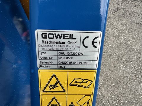 Göweil Kippmulde GHU 10/2200 DW - Dreipunktanbau Kat. I + II - doppelwirkender 2-stufiger Teleskopzylinder - Torsionsfedern für schnelles Absenken in Endlage - flacher Schaufelboden mit aufgeschweißter Schürfleiste aus Hardox 500 - abnehmbare Pendelbordwand - Schaufeltiefe 1.000mm - Schaufelbreite 2.200mm - Stirn-/Seitenwandhöhe 600mm - Gewicht ca. 400kg - Nutzlast bis zu 3.500kg Das Verkaufsteam der Firma Mühlbacher Maschinen zeigt Ihnen die Kippmulde gerne und bittet um Terminabsprache für eine Besichtigung bei uns im Betrieb. Besuchen Sie auch unsere 1.500m² große Ausstellungshalle!Nutzlast (kg): 3500