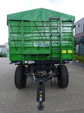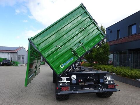 PRONAR Zweiachsdreiseitenkipper T 680 (Sonderaktion) Aktionspreis (Nur für Lagermaschinen gültig, solange der Vorrat reicht) EUR 22.000,-- zzgl. 19 % MwSt Inkl. folgender Sonderausstattung: - ALB-Regler - Rockinger Anhängekupplung (Typ: RO*400) - 2. Aufsatz 800 statt 600 mm (Ladevolumen 19,75 m³) - Zulassungsunterlagen auf 40 km/h Optional gegen Mehrpreis: - Rollplane mit Gestell (klappbar) und Podest EUR 1.450,-- zzgl. MwSt - Bereifung 560/45R22,5 BKT FL 630 EUR 2.250,-- zzgl. MwSt (Nur 1 Fahrzeug vorhanden!) - 3 Stück Kornschieber im unteren Aufsatz EUR 335,-- zzgl. MwSt (Nur 1 Fahrzeug vorhanden!) Technische Daten: Zul. Gesamtgewicht 18000 kg Eigengewicht 4900 kg Nutzlast 13200 kg Ladevolumen 17,2 m³ Ladefläche 12,3 m² Pritschenmaße innen LxB 5100 mm x 2410 mm Gesamtmaße LxBxH 7300/2550/2800 mm Bordwand 800 + 600 mm Plattformhöhe 1390 mm Blechdicke (Boden/Bordwand) 5/2,5 mm Spurweite 1900 mm Parabelfederung Kippsystem dreiseitig Maximale Geschwindigkeit 40 km/h Zylinderlänge 1980 mm / 18 Liter / 200 bar Kippwinkel hinten/Seite 47°/47° Bereifung 385/65 R 22,5 RE Serienmäßige Ausstattung: Stahlprofilbordwände zentrale Bordwandverriegelung Achsen auf 60 km/h Y-Deichsel mit starrer Zugöse Ø 40 mm geteilte Bordwände 800 mm + 600 mm 2-Kreis-Druckluftbremse Kurbelbremse Kippeinrichtung mit Abschaltvorrichtung Teleskopzylinder LED-Beleuchtungsanlage mit Schutzgitter elektrischer Anschluß + Öl und Luft hinten Keile mit Halter Kornschieber in der Rückwand Kotflügel für Hinterachse Aufstiegsleiter Rahmen schwarzgrau RAL 7021 Aufbau grün RAL 6010 Alle Preise zzgl. MwSt Finanzierung und Anlieferung gegen Mehrpreis möglich Alle technischen Daten und Ausstattungen sind annähernd und unverbindlich. Es gelten ausschließlich unsere Allgemeinen Geschäftsbedingungen, einsehbar unter euro-jabelmann de Alle Preise gelten netto ab Werk in D-49847 Itterbeck zzgl. der gesetzlichen MwSt. Die Frachtkosten und weitere Informationen erfragen Sie bitte bei uns. Die Angebote sind gültig solange der Vorrat reicht. Alle Angaben ohne Gewähr. Bitte beachten Sie den Link "Rechtliche Hinweise"Kontaktdaten: