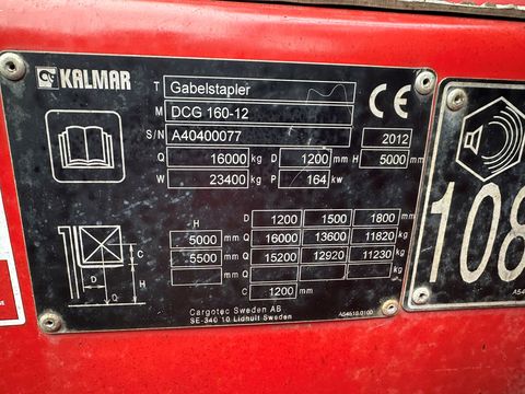 KALMAR-Dieselstapler DCG 160-12 Baujahr: 2012 10295 Betriebsstunden Tragkraft: 16000 kg / 1200 mm LSP Hubmast: Duplex-Freisicht Hubhöhe: 5500 mm Bauhöhe: 4445 mm Gabellänge: 2400 mm x 250 x 100 mm Bereifung: Luft Motor: 6-Zyl. Volvo-Diesel mit 164 kW Leistung - Zinkenverstellgerät mit Seitenschieber - Kalmar Komfort-Kabine mit Heizung u. Klimaanlage - STVO-Beleuchtung - Arbeitsscheinwerfer vorne, hinten u. am Hubmast GUTER ZUSTAND !!! servicegepflegtes Gerät !!! Für etwaige Rückfragen steht Ihnen Herr Thomas Lehner natürlich gerne zur Verfügung !Kontaktdaten: