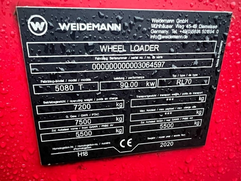 nette Weidemann 5080T Bouwjaar 2020 Banden 550/45-22.5 Extra hydraulische functie voor Hydraulische bak vergrendeling Machine nummer 72978Kontaktdaten: