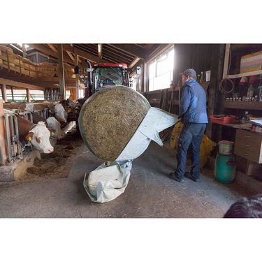 Rundballenabwicklungs- und Transportgerät - Art.Nr. = RBAFLM000001 Vier-Zinken-Ausführung mit Euro- und Dreipunktaufnahme Einfaches und schnelles Abwickeln des Silage- und Strohballen über die Schlepperhydraulik (auch zum Transport geeignet). Features: » Links- und Rechtslauf möglich » Alle Zinken sind in eingeschweißten Konusbuchsen geführt » Sicherer Halt und Transport » Einsparung einer zweiten Arbeitskraft » Dosiertes Abwickeln » Große Übersetzung von Ölmotor auf die Antriebswelle gewährleistet gleichmäßiges Abwickeln des Ballens » Serienmäßig mit Dreipunktaufnahme Kat. II und Euronorm-Aufnahme Technische Details: » Benötigte Ölmenge: 40 l » 1 doppeltwirkender Anschluss erforderlich » Inklusive zwei Rundballenzinken 1100 mm (M28 x 1,5) und zwei Frontladerzinken 1000 mm (M22 x 1,5) » Inklusive Hydraulikstecker und -schläuche » Antrieb: StirnradgetriebeKontaktdaten: