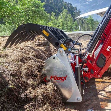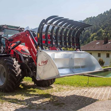 Silogreifschaufel »Standard« 2400 mm / mit Euronormaufnahme / verzinkt Die kostengünstige Lösung, um Silage zu entnehmen! Die Fliegl-Silogreifschaufel kann am Frontlader (Euronorm) sowie Radlader (Aufnahme nach Typ) angebaut werden. Sie eignet sich für alle Silagearten (Mais, Gras) sowie für Mist und andere Schüttgüter. Auch ein Futtermischwagen kann man problemlos befüllen. Die schweren doppeltwirkenden Hydraulikzylinder und die spitz zulaufenden Zinken sorgen für eine einwandfreie Entnahme aus dem Silo. Features: » Robuste Greiferanlenkung » Zusätzliche Knotenbleche zur Verstärkung der Greifeinheit » Entnahme nah an der Wand möglich » Ausführung Schaufel: vollverzinkt - langzeitiger Korrosionsschutz Technische Details: » Fassungsvermögen von 1,35 m³ » Maximale Öffnungsweite: 1420 mm » Schürfleiste (Höhe 150 mm, Stärke 16 mm) und Greifeinheit aus hochverschleißfestem Stahl HB 500 » Inklusive Hydraulikstecker und -schläuche » Eigengewicht: ca. 670 kgKontaktdaten: