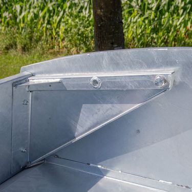 Heckschaufel »Mechanisch Gigant« 2200 mm / mit Dreipunktaufnahme / verzinkt Features » Sehr robuste Ausführung » Zusätzliche Verstärkungen an den Stirnseiten sorgen für höchste Stabilität » Entriegelung der Klinkenmechanik über Seilzug » Optional mit Unterschraubschürfleiste Technische Details » Höhe Stirnwand: 500 mm » Höhe Klappwand: 370 mm » Tiefe: 1040 mm » Transportmaße: Breite 2290 mm, Länge 1400 mm, Höhe 890 mm » Volumen: ca. 1,20 m³ » Eigengewicht: ca. 295 kgKontaktdaten: