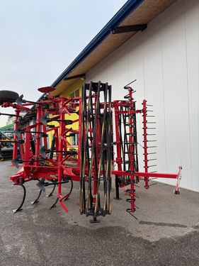 • 3 balkiger Grundrahmen mit 22 Zinken 30x30 mm und Flachschare 28,5 cm • (Schnittwinkelverstellung der Zinken- Flachschar ) • Dreipunktanbau Kat 2/3 • Tandem-Stützradpaar • Randbleche • Einreihiger Striegel mit Zinken 13,5 mm • mechanischer Tiefenverstellung des Striegels • Lichtanlage LED • 2500kg • Hydraulische Walzenverstellung • Zustreicherbalken gefedert • RP 595 Rohrstab-WalzeZinken (Stk.): 22
