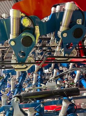 Neuwertiger Striegel, wenige Einsätze gefahren, Zinkendruck über Pneumatik Zylinder stufenlos verstellbar, bei gleichbleibendem Zinkenwinkel, Vorspannung der Zinken bis 5kg möglich, Gleichmäßiges bearbeiten von Dammkulturen und unebenen Bodenverhältnissen ist damit garantiert. Druckluftversorgung über den Schlepper- PDF Datenblatt