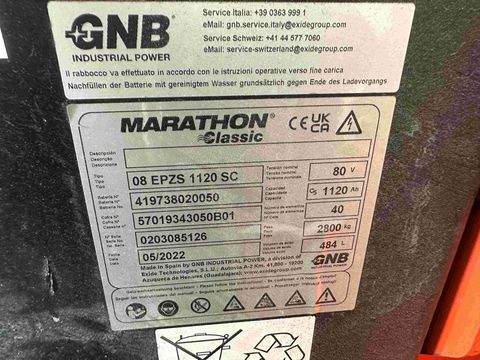 TOYOTA Elektrostapler 9FBH80T Baujahr: 2022 1812 Betriebsstunden Tragkraft: 8000 kg / 900 mm Lastschwerpunkt Hubmast: TRIPLEX-FREIHUB Hubhöhe: 5000 mm Bauhöhe: 3050 mm Freihub: 1775 mm Gabellänge: 2400 mm Bereifung: Super-Elastik - NON-Marking - Zinkenverstellgerät mit Seitenschieber - Kabine mit Heizung - Batterie 80 V / 1120 Ah - Ladegerät - komplette Lichtanlage vorne u. hinten TOP ZUSTAND !!! Für etwaige Rückfragen steht Ihnen Herr Thomas Lehner natürlich gerne zur Verfügung !Kontaktdaten: