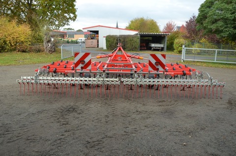 Groß- Federzahnegge, 7- balkig, hydr. Klappbar Doppelblatt- Federzinken mit ca. 13 cm Strichabstand mit Einebnungsstriegel - Tragrohr 60 x 60 mm 4 Schwingen- Stützrädern inklusive Warntafeln mit Beleuchtung Arbeitsbreite 6,0 m - Transportbreite 2,6 m 1 2. Reihe Striegel 60 inkl. Konsole 1 4 Stützräder 195/55 R10 C 1 Paar Stützräder 18-5x8.5-8 hinten 1 komplett mit Reifen und VerstellungKontaktdaten: