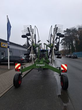 Arbeitsbreite ca. 6,80 - 7,60 m, hydr. Klappbar, Schwadtuch, Mittelschwader, Transportfahrwerk, Tandemachse, Warntafeln mit Beleuchtung, Gelenkwelle, Schutzbügel, Räumbreite ca. 2 x 3,20 m Transportbreite ca. 2,98 m Transportlänge ca. 5,33 m Abstellhöhe ca. 3,60 m Zinkenarme je Kreisel 12 Doppelzinken je Arm 4Kontaktdaten: