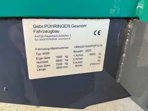Schöner Pühringer Kipper 4020, Bereifung 500/50-17 Flotation, Seilzugbremse (A)Kontaktdaten: