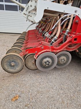 +) IDS (Teilbreitenschaltung, freie Wahl der Fahrgasse, ...) +) PCS-Ausrüstung (8-reihig; Reihenabstand 37,5 cm oder 75 cm) +) DUPLEX SEED (4x 75cm Doppelreihen mit je 2x 12,5 cm Reihen; Dreieckssaat: Abstand zu jedem Korn gleich) +) Saatgutüberwachung bei Einzelkorn +) Fahrgeschwindigkeit über GPS (AccoSat) +) Saattank 1200L (gesamt oder geteilt Einzelkorn/Dünger) +) Dosierrad 28 (Phacelia, Senf), 135 (Mais, Sonnenblumen), 550 (Getreide) +) Sensorrad für Dosierstart/-stopp +) Spurenreißer +) Doppelscheibenschar +) ISO-BUS +) hydr. Dosierantrieb (aus Edelstahl) +) hydr. Gebläse +) Schardruck bis 60 kg +) zentrale Schardruckeinstellung +) Saatstriegel neuwertig (10 ha in Verwendung) +) Beleuchtung +) Schneidringpackerwalze (optimale Rückverfestigung in der Saatreihe) +) Randbleche federbelastet Verfügbar ab April 2026Reihenanzahl: 24