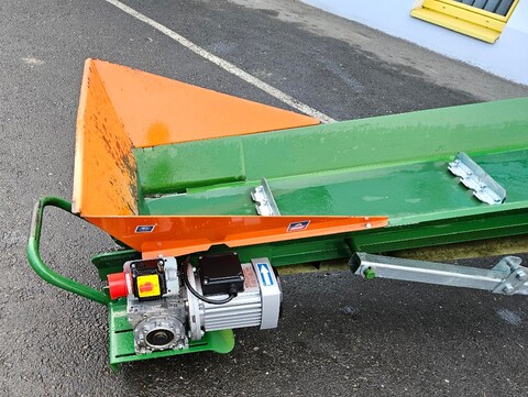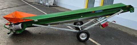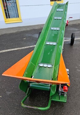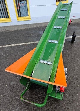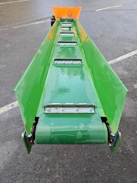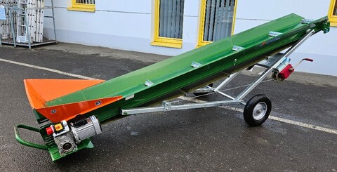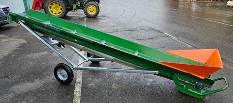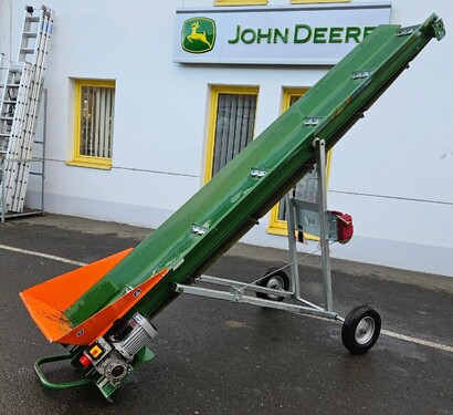 Elektrischer Antrieb 0,75 kW 400 V Maximale Auswurfhöhe 2,7 m Gewicht: 286 kg Gürtelbreite 30 cm Gurtbauweise: Einzelelemente geschraubt Luftreifenräder Ø 40 cm Förderbandneigung zwischen 10° und 40° mit Handseilwinde verstellbar Förderbandgeschwindigkeit 50 cm/s Neuwertig Um Ihnen unnötige Wartezeiten oder Wegstrecken zu ersparen, bitten wir Sie um vorherige Kontaktaufnahme, falls Sie eine unserer Gebrauchtmaschinen besichtigen bzw. Probe fahren wollen. Wir freuen uns auf Ihren Anruf!Kontaktdaten: