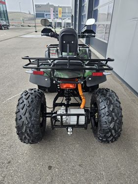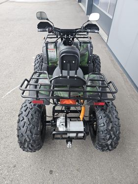 KOSTENLOSE ZUSTELLUNG IM UMKREIS VON 50 KM!!! Technische Daten: Übertragungssystem: 4WD (4-Rad-Antrieb) Batterie: 72V52Ah Seilwinde vorne: 12V Batterie Type: Bleisäure Fahrzeuggröße (LxBxH): 1850 x 1160 x 1150 mm Gewicht: 290 kg Sitzhöhe: 830 mm Bodenfreiheit: 200 mm Radabstand: 1260 mm Vordere Spurweite: 960 mm Hintere Spurweite: 830 mm Bereifung: Vorne: 25x8-12 Hinten: 25x10-12 mit Alufelgen (Geländereifen) Regler (Differenzialdrehzahlmotor): Vorne 1500W / Hinten 3500W Bremse (vorne + hinten): Hydr. Scheibenbremse Max. Geschwindigkeit: 45 km/h Max. Ladekapazität: 300 kg Ladezeit: ca. 8-9 h Ausstattung: *Frontantriebssystem *Frontgetriebe *Frontsteuerung *Linker und rechter Käfig *Motorhalter *Anhängevorrichtung (Gerader Kugelkopf, Durchmesser: 15 mm) *Transferschalter zwischen 2WD - 4WD *Ab 16 Jahren!! *Inkl. COC-Papiere (inkl. Einspielung in die österr. Datenbank) KOSTENLOSE ZUSTELLUNG IM UMKREIS VON 50 KM!!!Laufleistung (km): 000