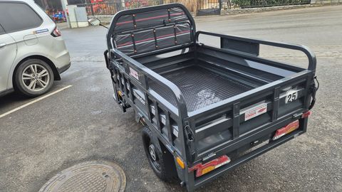 ✨ EcoLine Elektro-Lastendreirad AKTION ✔️ Modell : NERO Thunder ✔️ optimal für jeden Betrieb, Hof oder ✔️ einfach nur zum Spaß. ✔️ Der Alleskönner ist mit einem ✔️ 600W Elektromotor ✔️ große und kippbare Ladefläche ✔️ Zuladung : problemlos 300 kg ! ✔️ 5 St. starke u. langlebige 45 Ah-Batterien ✔️ in 6-8 Stunden voll aufgeladen und haben ✔️ Reichweite von ca. 50-80 km. ✔️ Maximalgeschwindigkeit : 25 km/h, ✔️ in Österreich dzt. wie ein E-Bike eingestuft ✔️ d.h. keine Anmeldung erforderlich ✔️ größere Luftbereifung montiert (4.00-12) ✔️ Unter dem Fahrersitz bietet das TukTuk ✔️ einen großzügigen Verstauraum, dieser ist ✔️ für persönl. Gegenstände sinnvoll, die auch ✔️ regengeschützt aufbewahrt werden können. ✔️ Zudem ist das Elektro-Lastendreirad NERO ✔️ Thunder ist mit CE-Zertifikat ausgezeichnet. ✔️ Der umwelt- u. klimafreundliche Transporter ✔️ benötigt quasi keine Wartung und ✔️ ist extrem günstig in der Instandhaltung. ✔️ Rückspiegel eine optimale Übersicht ✔️ Digitaler Tacho - gute Übersicht über ✔️ Geschwindigkeit und Ladezustand! ✔️ 3 Geschwindigkeitsstufen per Knopfdruck ✔️ plus mechanische Berg - Untersetzung ✔️ und einen Rückwärtsgang mit Summer! ✔️ immer mehrere Lastendreiräder lagernd ✔️ und auch prompt verfügbar ! ✔️ optional auch mit 45km/h als PRO - Variante ✔️ und/oder mit Dach und elektr. Scheibenwischer ✔️ oder auch in Farbe ROT verfügbar ✔️ auf Wunsch . ev. auch mit elektrohydraulischer ✔️ Kippung der Ladefläche verfügbar !! ✔️ NERO Thunder PRO mit 45km/h ✔️ kostet serienmäßig nur € 3.390,- inkl. Mwst. ✔️ Techn Daten der 45km/h - PRO Version: ✔️ 1.500W Motorleistung ✔️ 45km/h Endgeschwindigkeit ✔️ 6 St. Batterien 72V 45Ah ✔️ innerhalb 6-8h vollständig geladen ✔️ Reichweite 50-80km/h ✔️ 500kg Lastaufnahmekapazität ✔️ Moped-Führerschein erfoderlich ✔️ anmelden erforderlich ✔️ Helmpflicht ✔️ Vorfracht : nur € 120,- statt € 240,- inkl. ✔️ jetzt WINTERAKTION - KOSTENLOS bis 31.12.2025 !! ✔️ Als Zubehör können wir Ihnen anbieten: ✔️ 2 St. Stollenreifen f. hi. = € 150,- inkl. MwSt. ✔️ Fahrerkabine mit Frontscheibe und ✔️ elektr. Scheibenwischer = € 320,- inkl. MwSt. ✔️ Planen- oder geschloßener Aufbau für Ladefläche.Laufleistung (km): 5