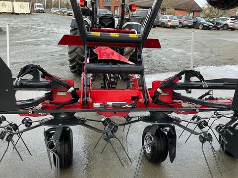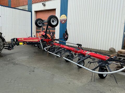 -Pro Line -Das Getriebe ist nicht Teil des Hauptrahmens, sondern wird angeschraubt. Es werden keine Belastungen auf das Getriebe übertragen. -Das Transportfahrwerk ermöglicht es diese beiden Maschinen mit relativ kleinen Traktoren ab 70 PS einzusetzen. -Große Räder an dem Fahrwerk (10.0/75-15.3) mit einer großen Spurweite von 2,45 m sorgen für stabile Spurführung und Laufruhe. -Zahnrad und Antriebsrad in einem Gehäuse für einen sehr zuverlässigen Antrieb. -Alle Wender mit Transportfahrwerk verfügen über eine hydraulische Grenzstreueinrichtung. -Ein Marker zeigt die Position der Achse an.
