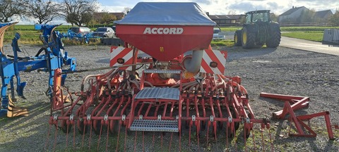 1 gebrauchte Sämaschinenkombination Hersteller: Kuhn / Accord Modell: Kuhn HR 3002 D +Accord DA Pneumatic Arbeitsbreite: 3,00 m Baujahr Kreiselegge: 1996 24 Reihen, Abstand: 12,5 cm Säeinheit ACCORD DA Pneumatic Seriennummer:030965 Pneumatische Saatgutverteilung Mechanischer Gebläseantrieb Scheibenschare Nachlaufstriegel Großer Saatgutbehälter mit Abdeckplane Breite Trittroste Beleuchtungseinheit mit Warntafeln Gelenkwelle Fahrgassenschaltung Kreiselegge KUHN HR 3002 D Seriennummer: 970017 Erfassungsnummer: 175236 Zahnpackerwalze Schlepplanke Dreipunktanbau Gewicht Gesamtkombination: ca. 2.200 kg Die Sämaschinenkombination wurde an vielen Stellen bereits geschweißt. Standort: D-97232 EuerhausenKontaktdaten: