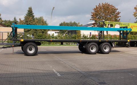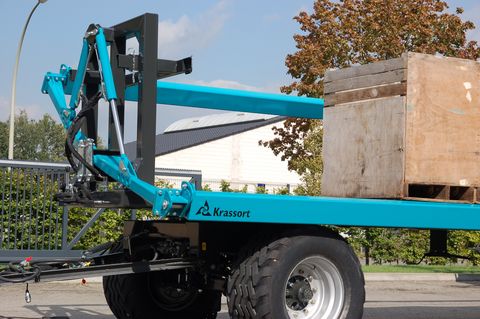 Fahrwerk: 10 to Achsen Dreiachser mit Drehkranz Bremsanlage: Druckluftbremse mit ALB Höchstgeschwindigkeit: Zulassung auf 40 km/h optional 60 km/h Bauart: Plattformwagen mit patentierten hydraulischen Klemmgatter für Kisten. Beladelänge: 10300 mm Breite ohne Beladung: 2540 mm Spurweite: 2000 mm TÜV: Tüv-Abnahme , Dekra Ladungssicherungszertifikat Der Krassort Transportkistenwagen mit hydraulischen Klemmgattern wurde speziell für den Transport von Kisten entwickelt. Durch seine hydraulischen Seitengatter, die während des Beladevorgangs hydraulisch abgeklappt werden können, verfügt der Krassort Transportkistenwagen als einziger über ein Kistensicherungssystem, das dem Benutzer ein Höchstmaß an Komfort und Sicherheit bietet. Das lästige und zeitaufwendige Ausrichten und vergurten der Kisten entfällt komplett. Durch das Hochklappen der Klemmgatter werden die Kisten auf dem Fahrzeug ausgerichtet und zwischen den Gattern festgeklemmt. Des weiteren zeichnet sich das Fahrzeug durch hohe Stabilität aus, die durch die Verwendung von Feinkornstahl und Großdimensionierten Rohrprofilen erreicht wird. Um die Handhabung weiter zu erleichtern, besitzt das Fahrzeug eine Druckluftbremse mit ALB und Handlöseventil, wodurch das lästige kurbeln entfällt. Zwischenverkauf und Irrtum vorbehalten