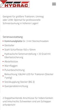 Neuer Hydrac Schneepflug U3-320 3-scharig Gesamt 3,20m, Räumbreite 2,7m, Anbauplatte Euro3, Laufsohlen, Schneestaubschutz, Listenpreis Netto 22000,-- Sofort verfügbar! Wir freuen uns auf Ihre Anfrage bzw Besuch bei uns in der FirmaKontaktdaten: